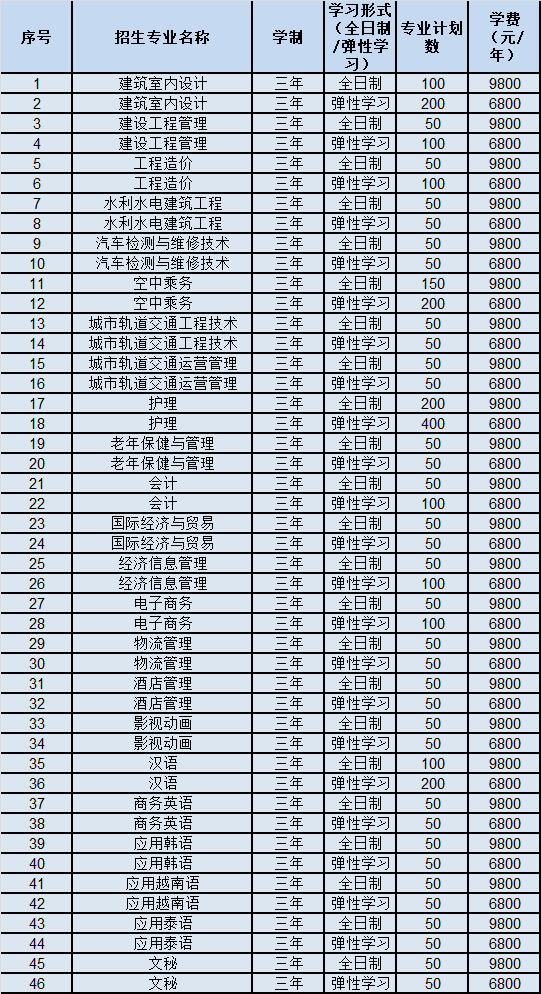 高職擴(kuò)招招生專業(yè)23個(gè),招生計(jì)劃3850人。招生專業(yè)具體如下: