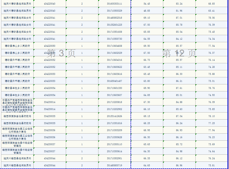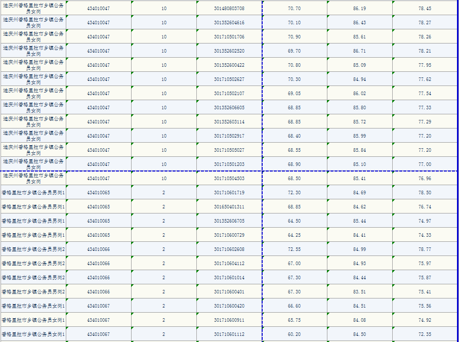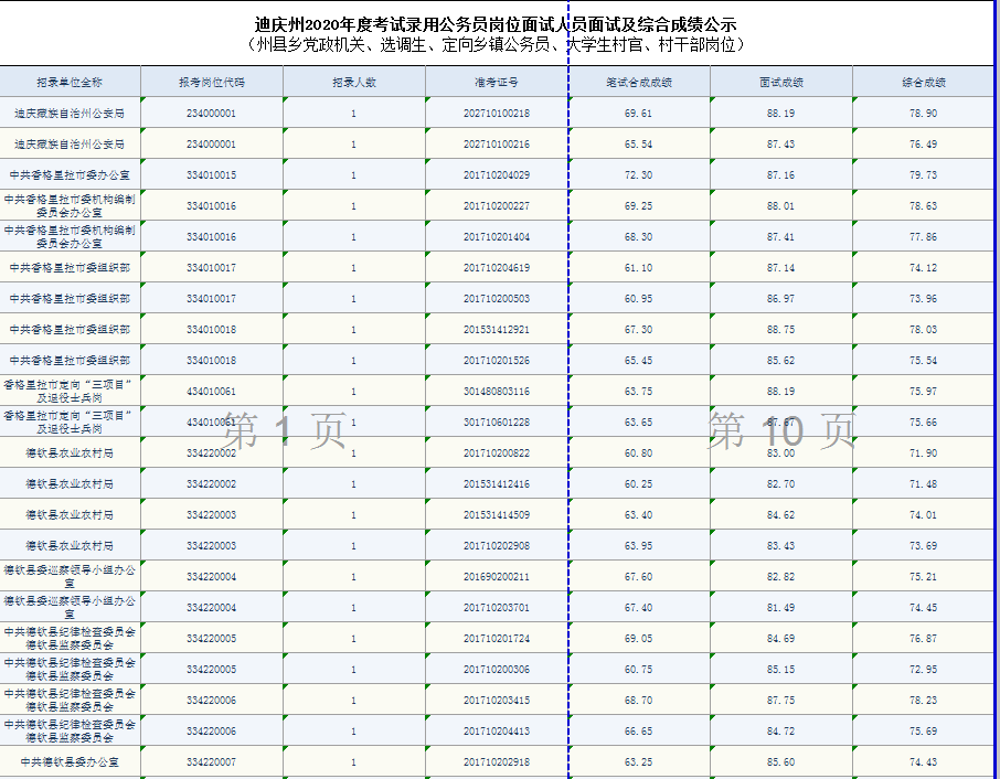 迪慶州2020年度考試錄用公務(wù)員崗位面試人員面試及綜合成績公示 (州縣鄉(xiāng)黨政機關(guān)、選調(diào)生、定向鄉(xiāng)鎮(zhèn)公務(wù)員、大學(xué)生村官、村干部崗位)