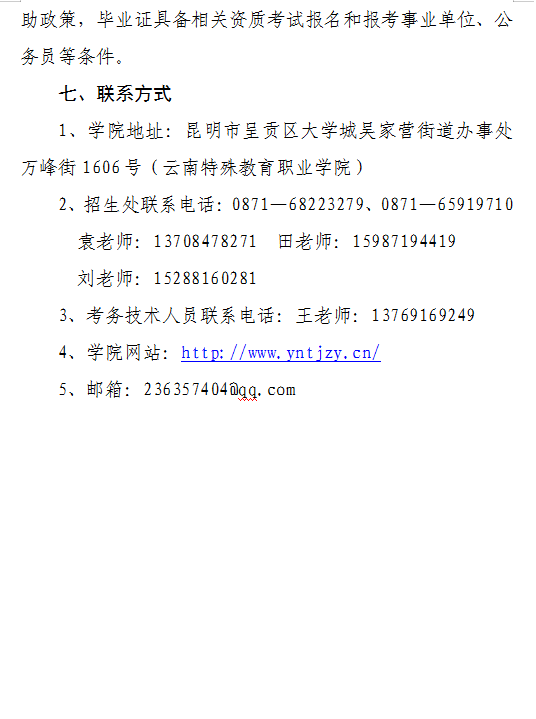 云南特殊教育職業(yè)學(xué)院招生信息匯總
