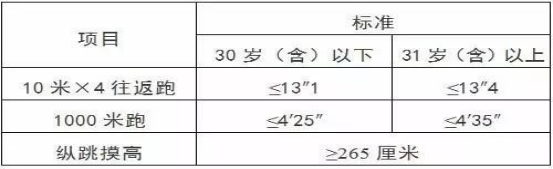 體能測試參照《公安機關(guān)錄用人民警察體能測評項目和標準(暫行)》進行。具體標準如下:
