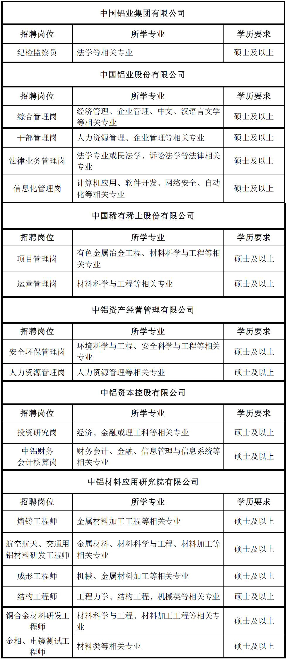 中國鋁業(yè)集團有限公司2021年應屆高校畢業(yè)生招聘公告
