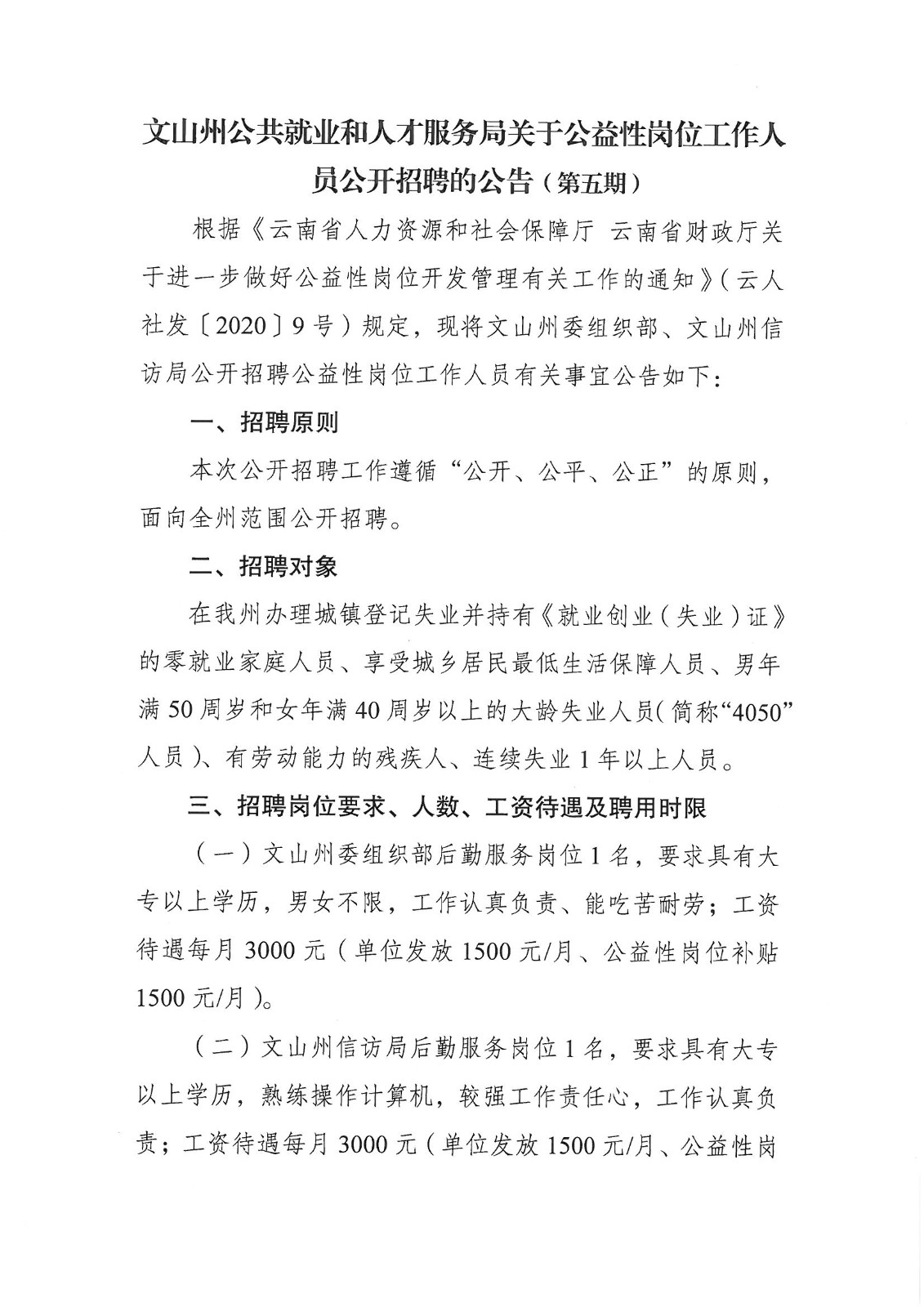 關(guān)于公益性崗位工作人員公開招聘的公告(第五期)