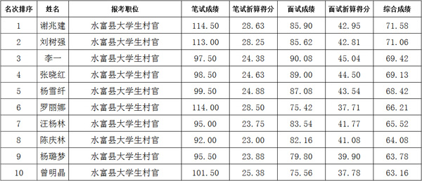 附:水富縣2014年大學(xué)生村官選聘綜合成績(jī)表