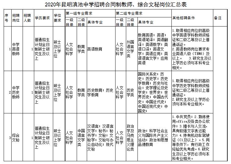 昆明滇池中學(xué)2020年招聘合同制教師、綜合文秘公告