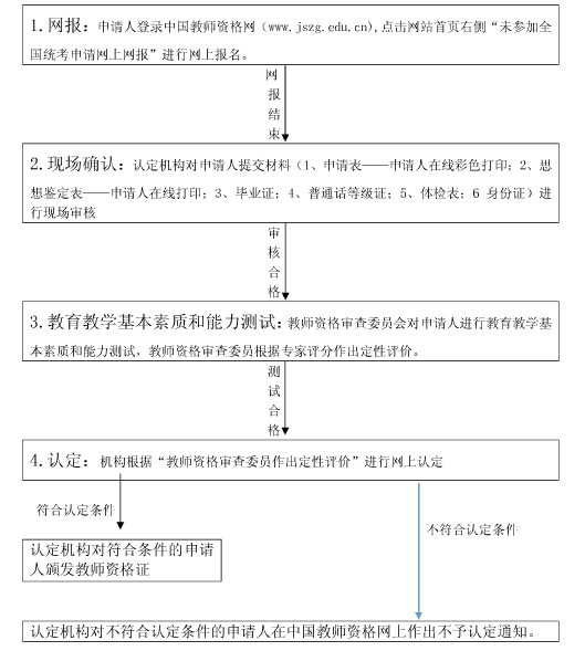 本認(rèn)定機構(gòu)受理:申請幼兒園、小學(xué)、初級中學(xué)教師資格的認(rèn)定人員戶籍或工作單位在盈江縣行政區(qū)域。