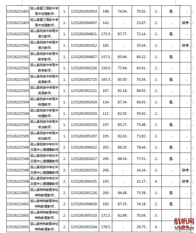 根據(jù)《2020年文山州事業(yè)單位招聘公告》、《硯山縣2020年事業(yè)單位公開(kāi)招聘工作人員面試有關(guān)事宜的通知》等相關(guān)工作要求,我縣于2020年12月6日對(duì)硯山縣事業(yè)單位公開(kāi)招聘需面試崗位的人員進(jìn)行面試,現(xiàn)將面試崗位人員的綜合成績(jī)公示如下: