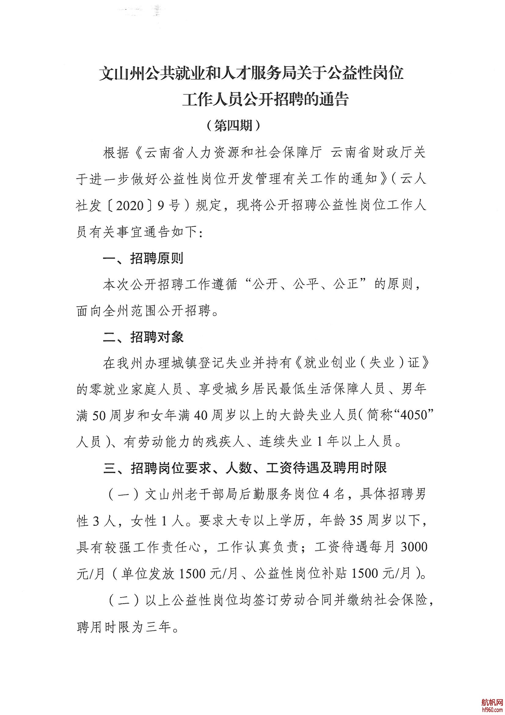 關(guān)于公益性崗位工作人員公開(kāi)招聘的通告(第四期)