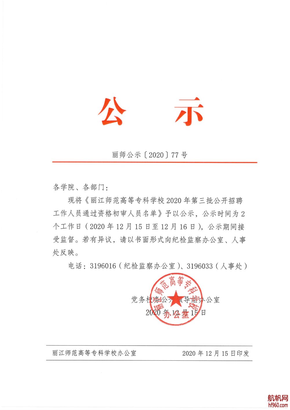 麗江師范高等??茖W(xué)校2020年第三批公開招聘工作人員通過資格初審人員名單