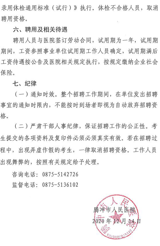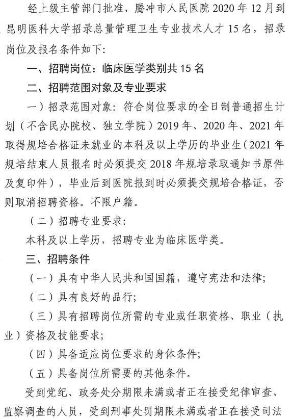 騰沖市人民醫(yī)院2021年度公開(kāi)招聘總量管理衛(wèi)生專業(yè)技術(shù)人員招聘公告