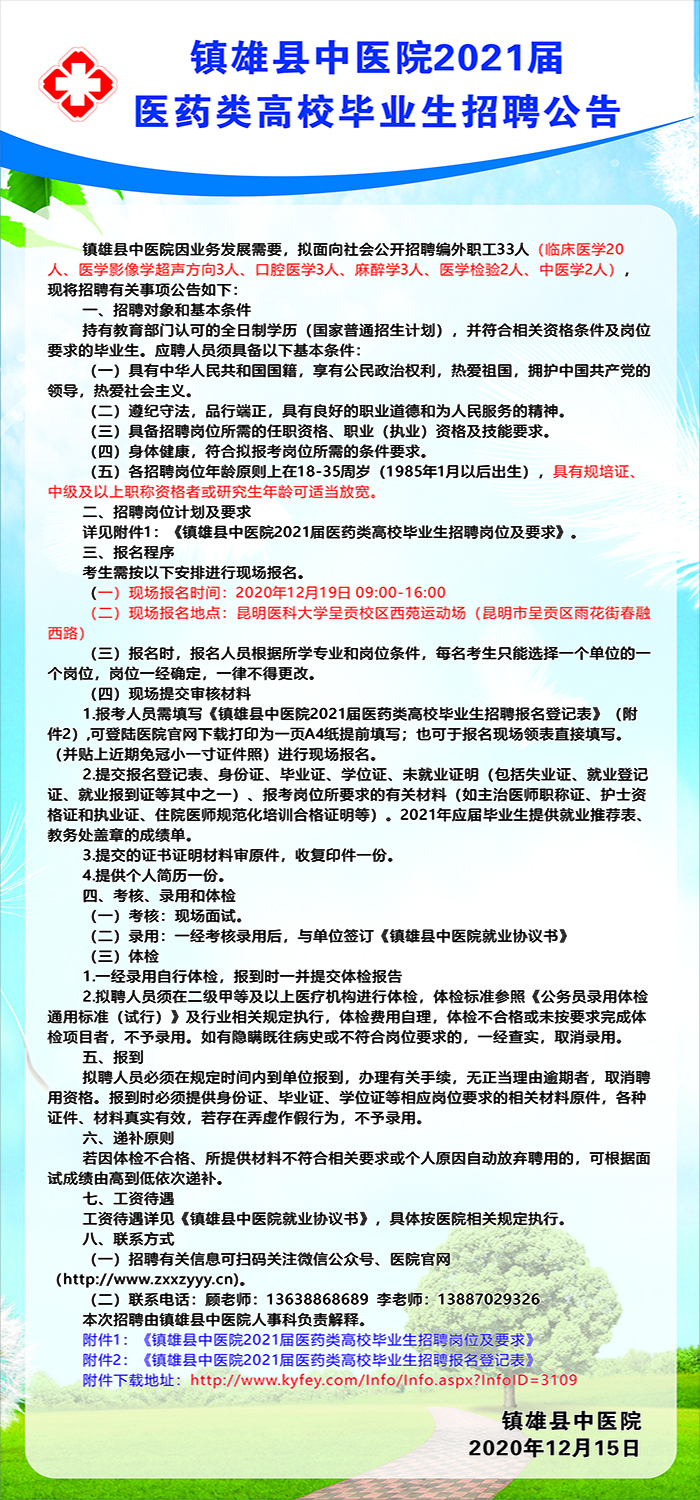 附件1.《鎮(zhèn)雄縣中醫(yī)院2021屆醫(yī)藥類高校畢業(yè)生招聘崗位及要求》