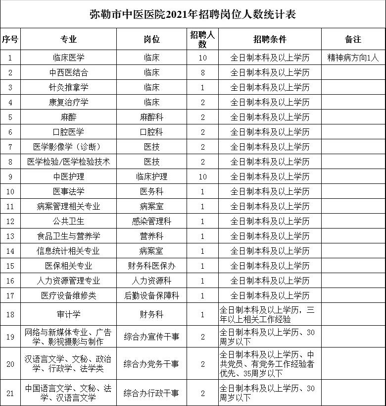 彌勒市中醫(yī)醫(yī)院2021年人才公開招聘公告(74名)