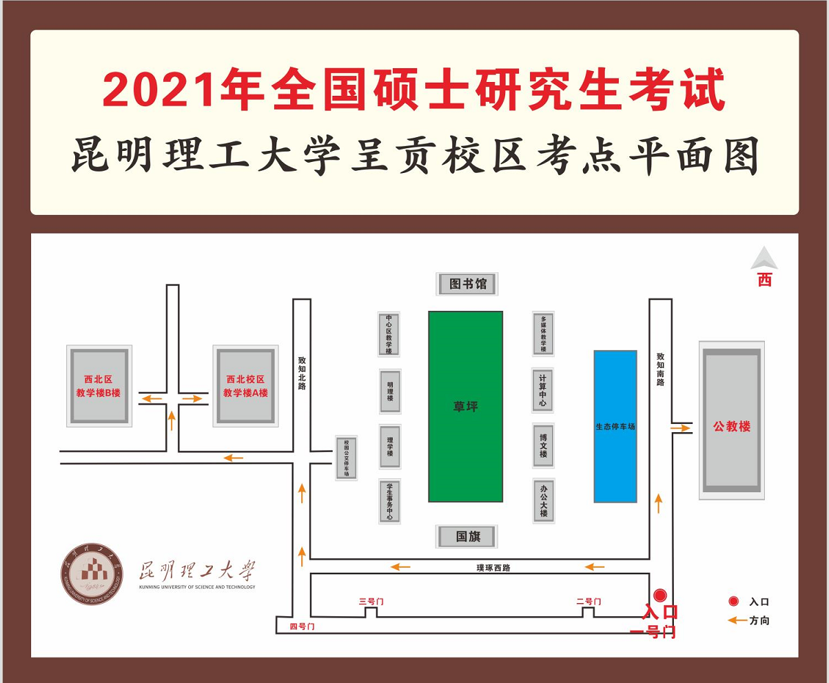 考生只能從指定的唯一入校通道--昆明理工大學呈貢校區(qū)1號門(昆明市呈貢區(qū)景明南路)進入,其它校門入口不允許考生進入。