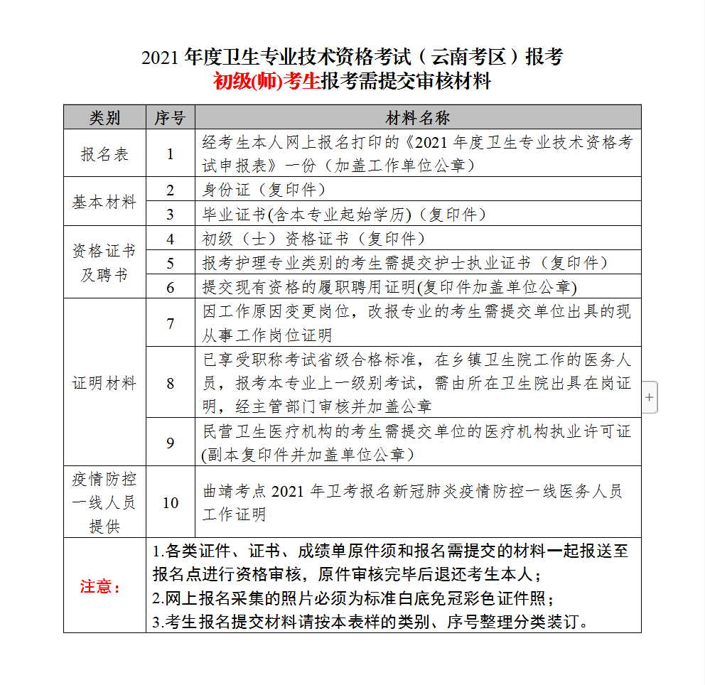 曲靖考點(diǎn)2021年衛(wèi)生專業(yè)技術(shù)資格考試報名注意事項(xiàng)(公告)