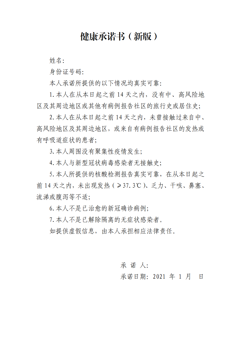 (四)考生須簽署并提交本公告發(fā)布的《健康承諾書(新版)》(附件2)。