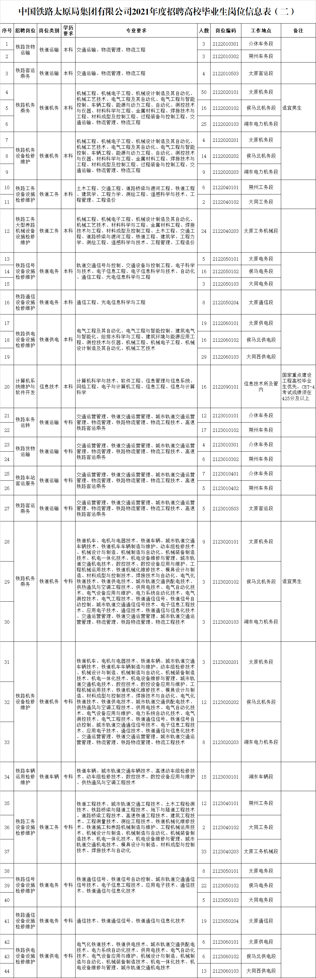 中國鐵路太原局集團(tuán)有限公司2021年招聘高校畢業(yè)生公告(二)