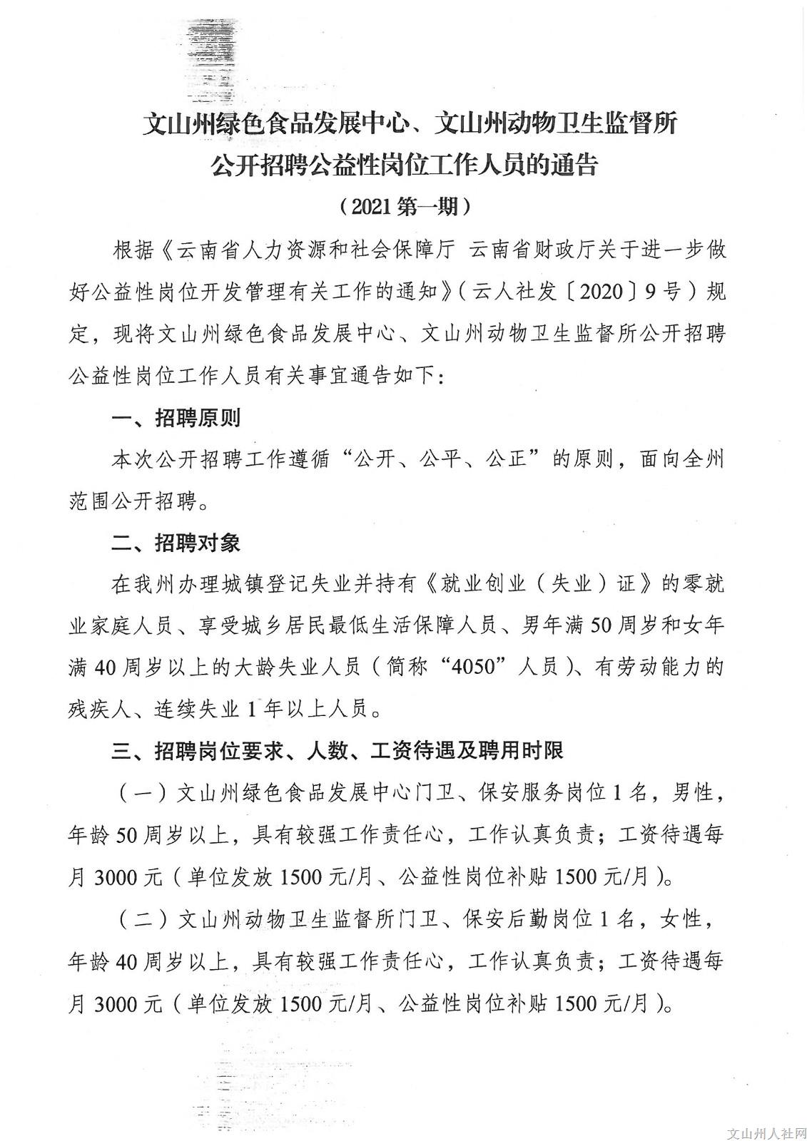 公開招聘公益性崗位工作人員的通告(2021第一期)