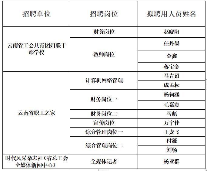 云南省總工會直屬事業(yè)單位2020年公開招聘擬聘用人員公示