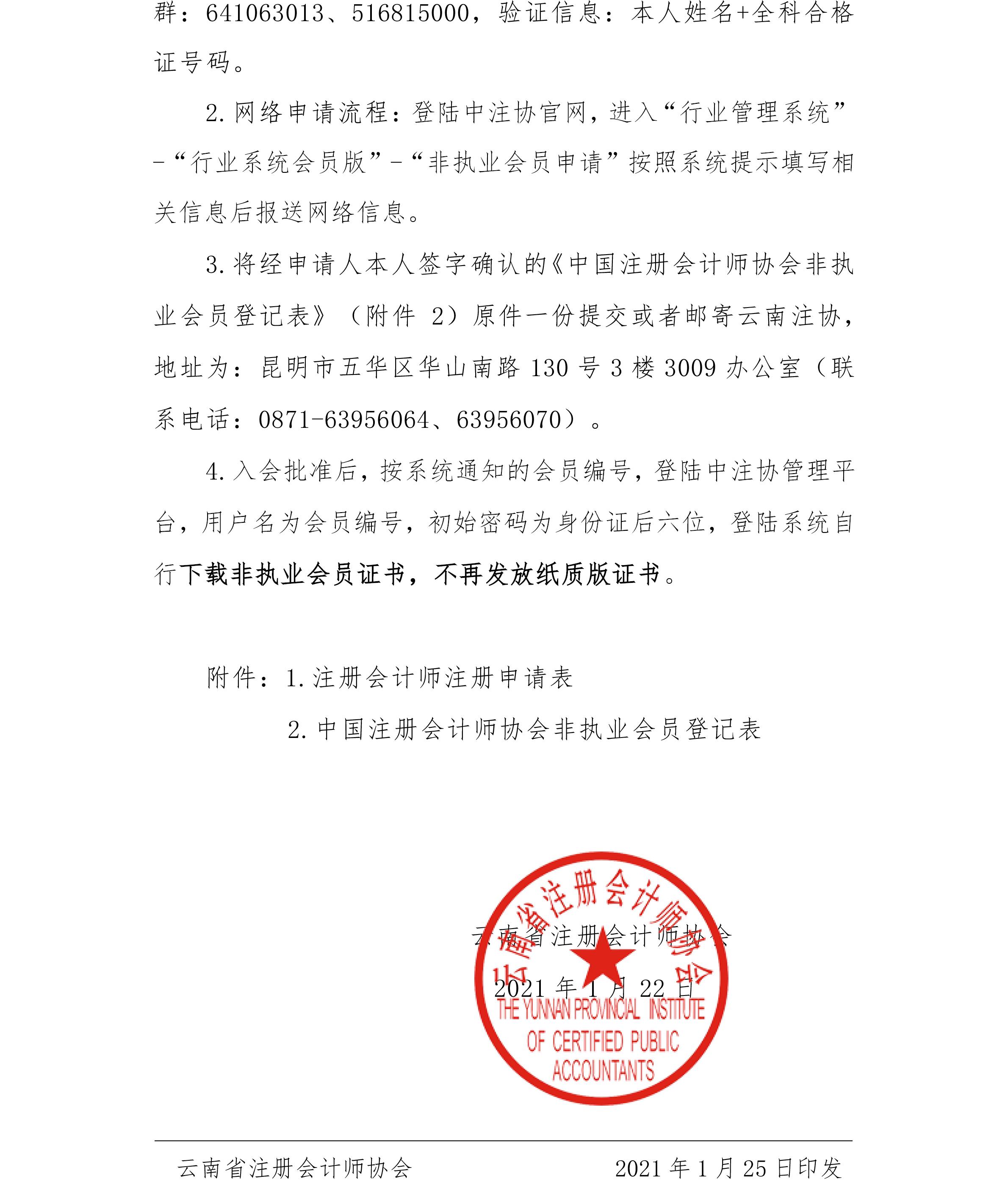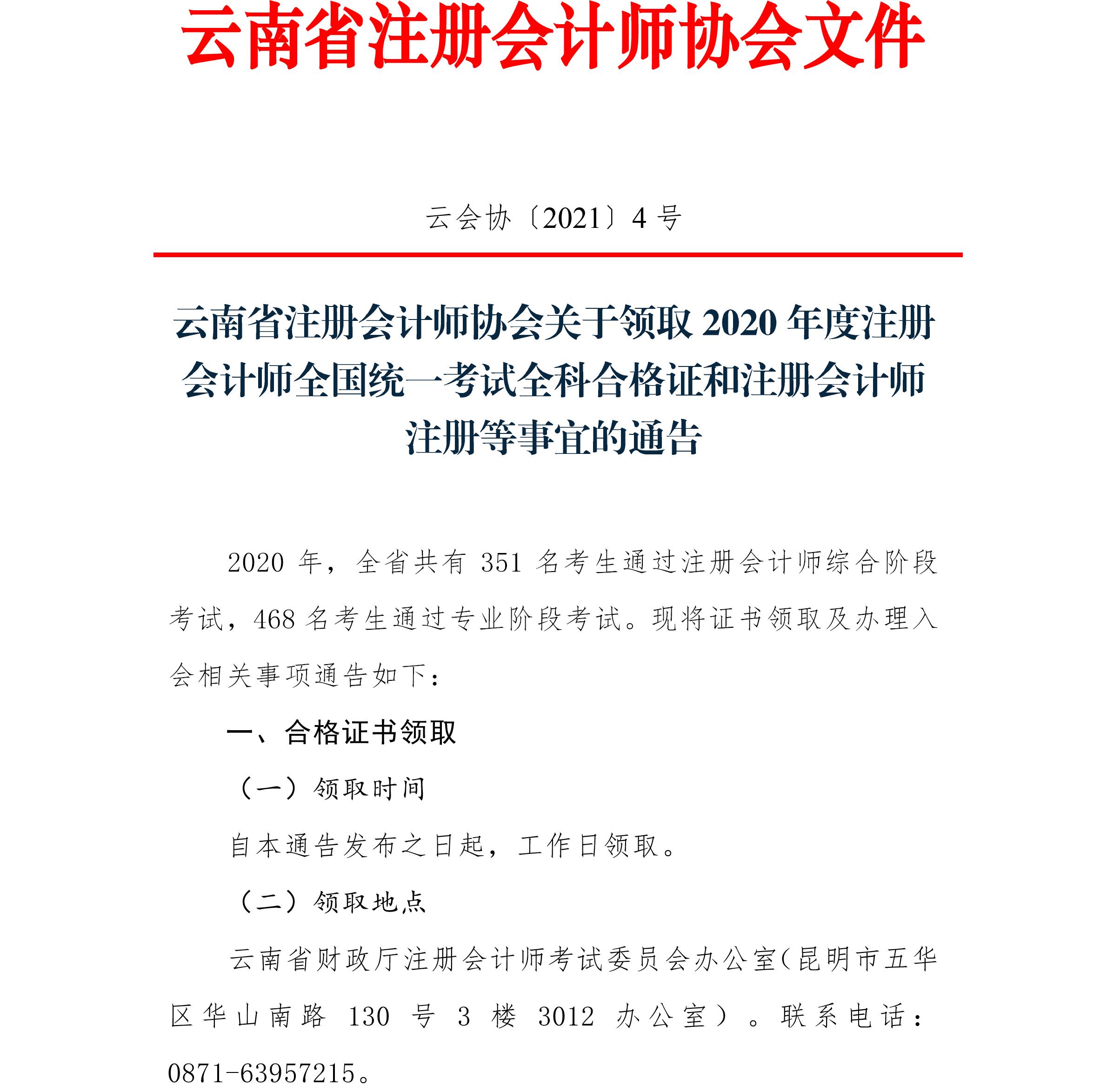 云南省注冊會(huì)計(jì)師協(xié)會(huì)關(guān)于領(lǐng)取2020年度注冊會(huì)計(jì)師全國統(tǒng)一考試全科合格證和注冊會(huì)計(jì)師注冊等事宜的通告.pdf 附件: