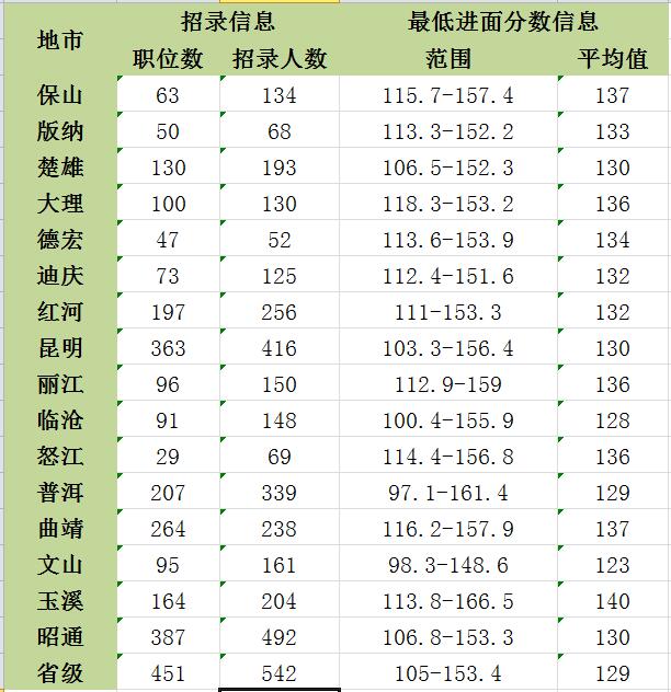 2020年云南省公務(wù)員考試各州市進(jìn)入面試分?jǐn)?shù)線