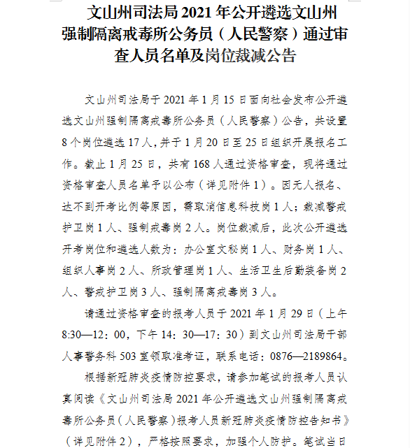 文山州司法局2021年公開遴選文山州 強(qiáng)制隔離戒毒所