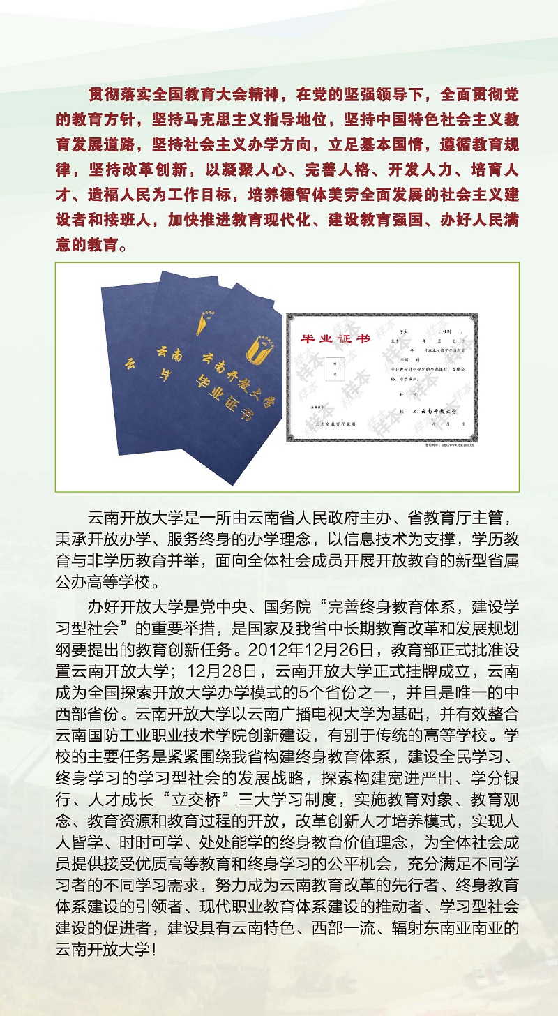 云南開放大學(xué)2021年春季開放教育招生簡章