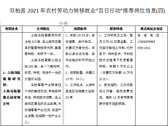 雙柏縣2021年農(nóng)村勞動力轉(zhuǎn)移就業(yè)“百日行動”推薦崗位信息(四) 來源:http://www.cxshb.gov.cn/file_read.aspx?id=47583
