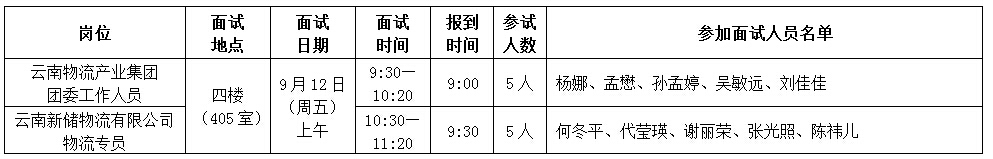 云南物流產(chǎn)業(yè)集團(tuán)2014年度公開招聘大學(xué)生村官面試定于2014年9月12日(周五)上午在集團(tuán)本部進(jìn)行,現(xiàn)將有關(guān)事項(xiàng)通知如下: