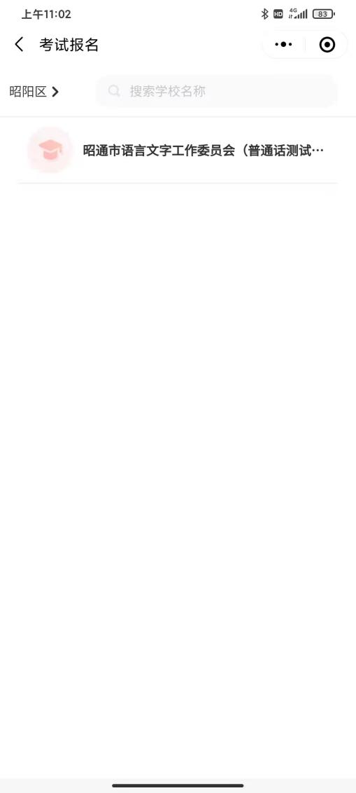 1、點(diǎn)擊“報(bào)名-------考試報(bào)名”圖標(biāo),找到學(xué)校“云南昭通市語言文字工作委員會(huì)(普通話測(cè)試站)”