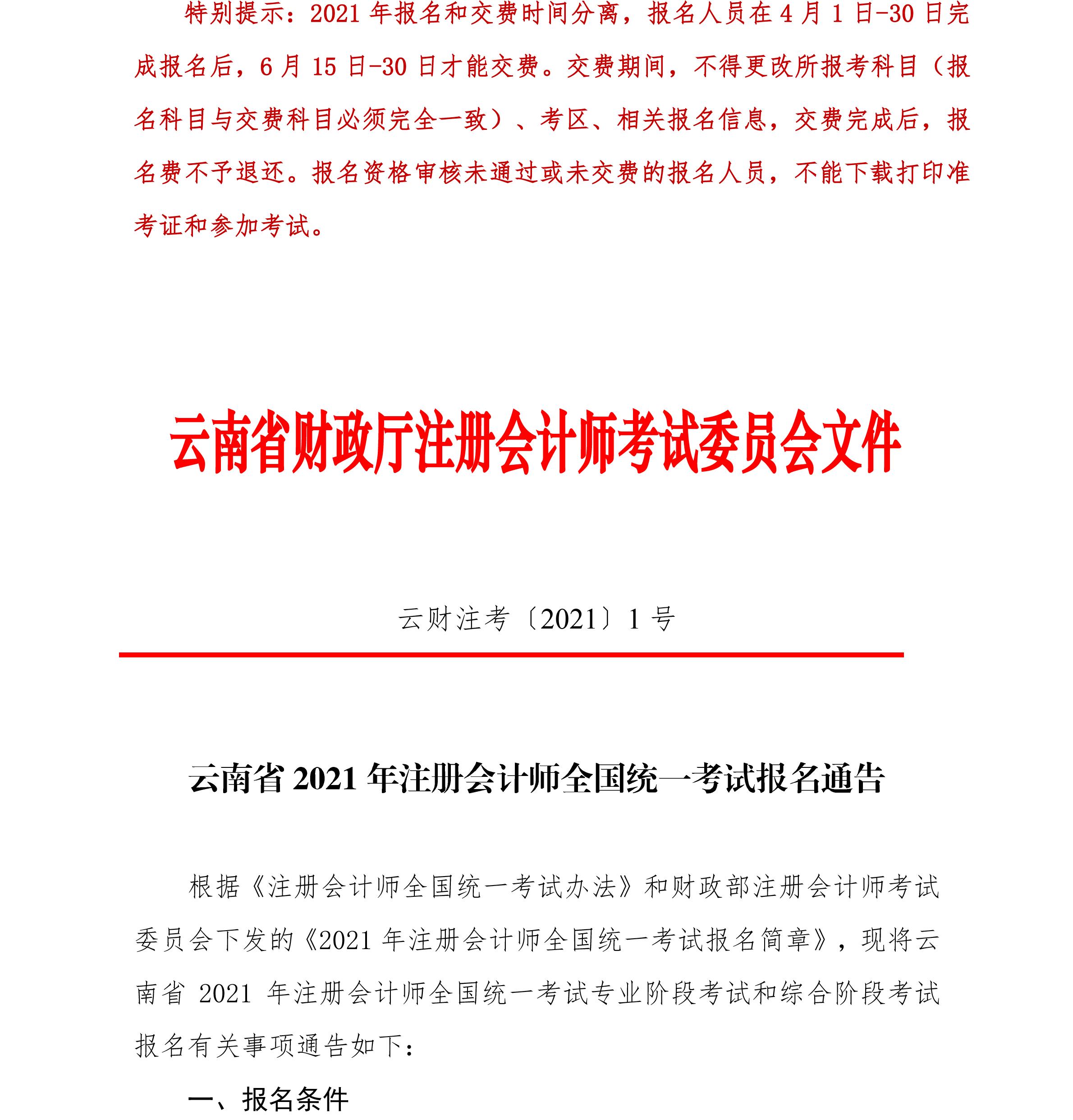 云南省2021年注冊(cè)會(huì)計(jì)師全國(guó)統(tǒng)一考試報(bào)名通告