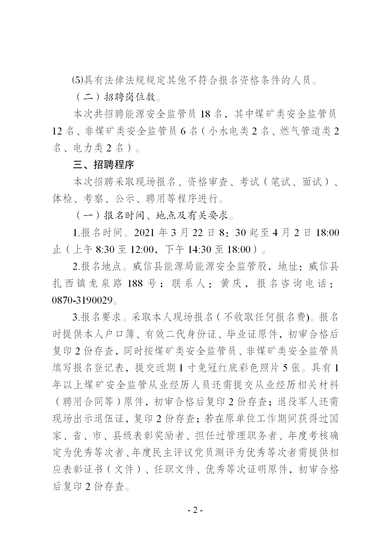 2021年昭通市威信縣能源局招聘能源安全監(jiān)管員公告