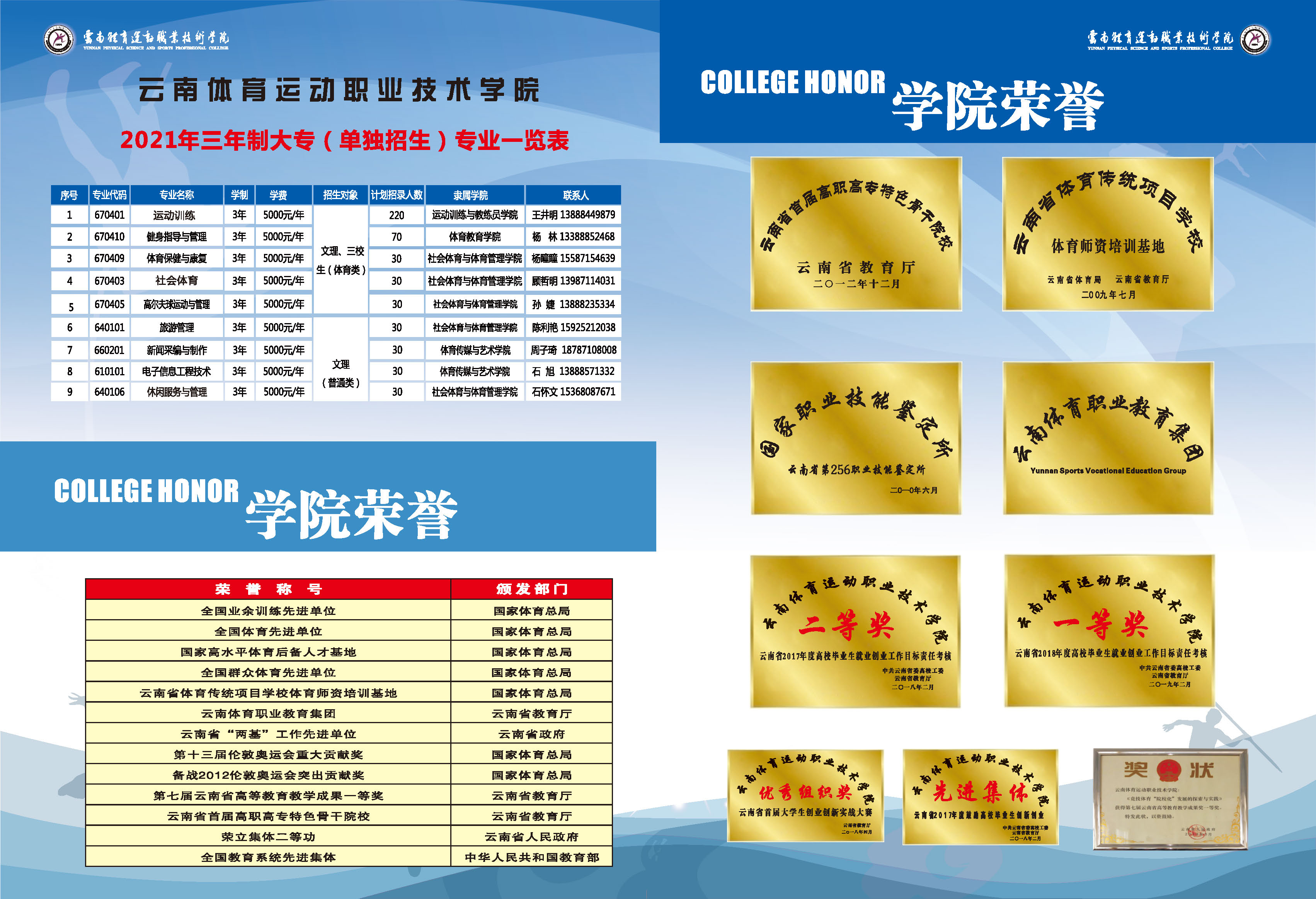 云南體育運(yùn)動(dòng)職業(yè)技術(shù)學(xué)院2021年高職單招招生簡章
