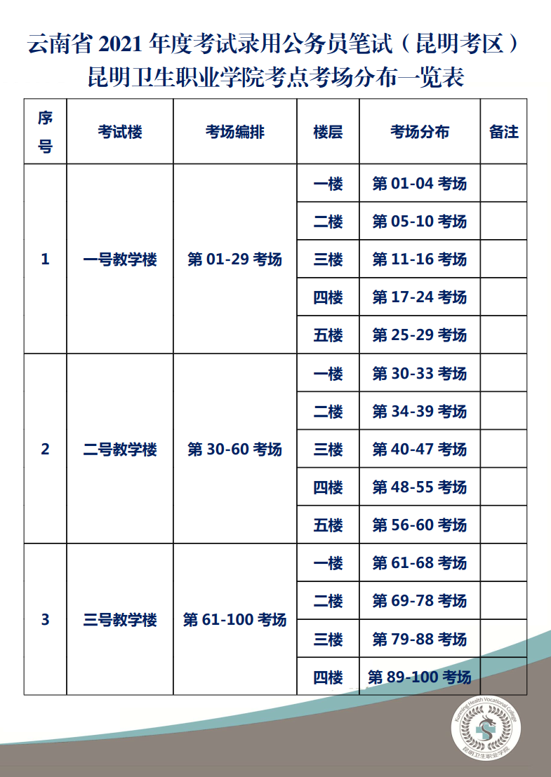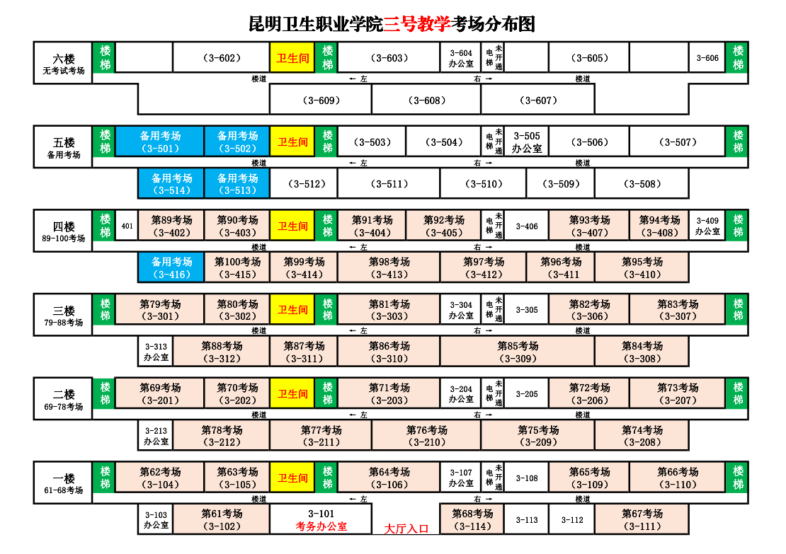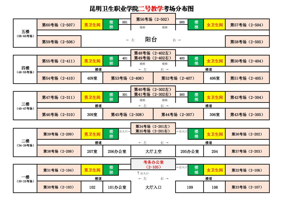 昆明衛(wèi)生職業(yè)學(xué)院考點(diǎn)考場(chǎng)分布圖