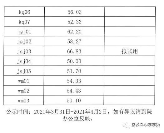 馬關(guān)縣中醫(yī)醫(yī)院2021年3月30日專業(yè)技術(shù)人員招聘面試成績及擬試用公示