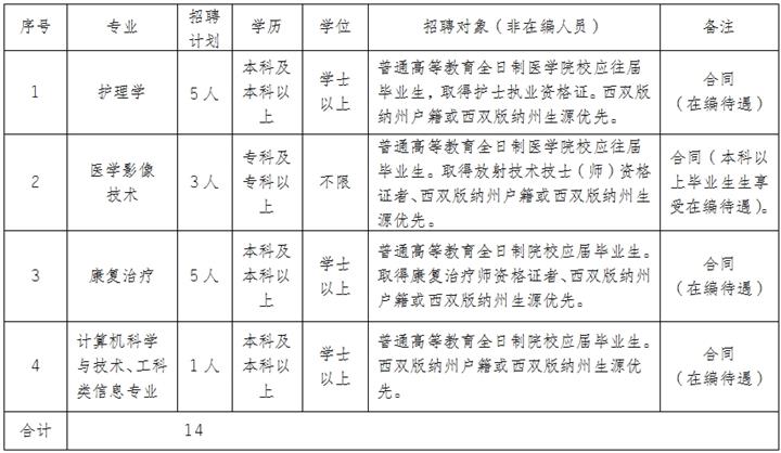 西雙版納州景洪市第一人民醫(yī)院招聘簡章