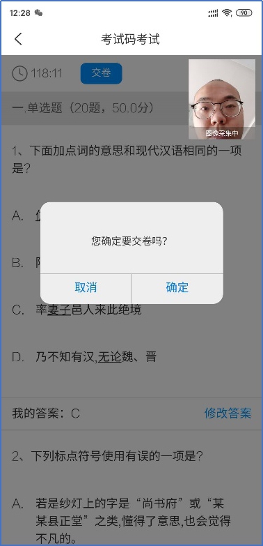 3、作答期間請(qǐng)考生不要頻繁切換手機(jī)界面,若有來電建議考生立即掛斷;