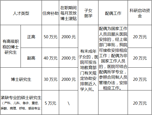 按國家有關(guān)政策管理和享受相關(guān)待遇外,并按醫(yī)院有關(guān)規(guī)定享受引進(jìn)高層次人才待遇,具體如下: