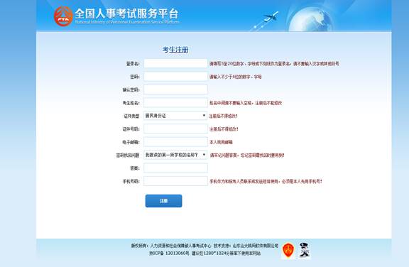 點擊“注冊”按鈕,進入考生注冊頁面,如下圖所示:
