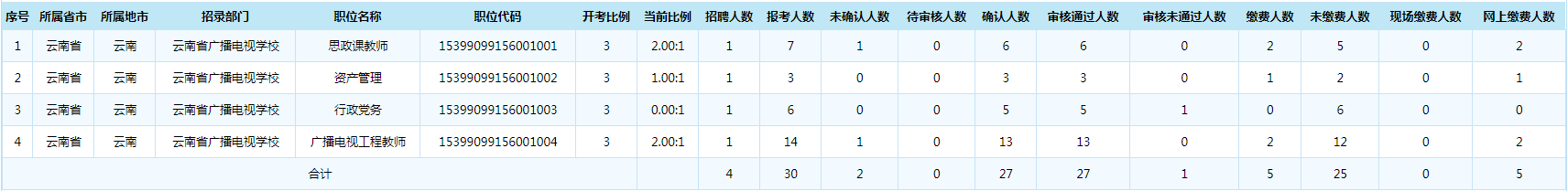 云南省廣播電視學(xué)校2021年事業(yè)單位招聘報名情況(年4月25日11:30)