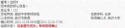 二、 信息提交成功,等待現(xiàn)場確認(rèn)