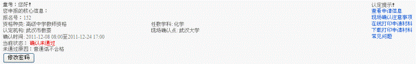 申請人已經(jīng)到認(rèn)定機構(gòu)指定的現(xiàn)場確認(rèn)點確認(rèn)個人網(wǎng)上申報信息,但提交的申請材料不合格,其申請狀態(tài)為“確認(rèn)未通過”。如果確認(rèn)點給出了確認(rèn)未通過的原因并給申請人留言后,則申請人登錄后可以看到。如下圖所示: