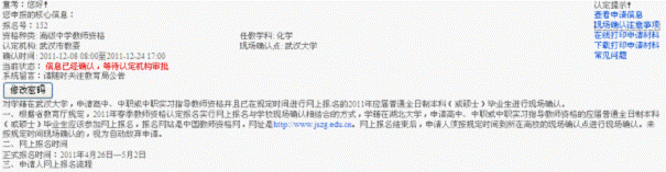 申請人已經(jīng)到認(rèn)定機構(gòu)指定的現(xiàn)場確認(rèn)點確認(rèn)個人網(wǎng)上申報信息,且提交的申請材料合格,在等待認(rèn)定機構(gòu)審批、認(rèn)定期間,無論認(rèn)定機構(gòu)給出何種認(rèn)定狀態(tài),申請人登錄后看到的申請狀態(tài)都為“信息已經(jīng)確認(rèn),等待認(rèn)定機構(gòu)審批”。認(rèn)定機構(gòu)給申請人的留言,申請人登錄后可以看到。如下圖所示: