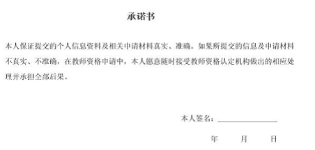 申請人打印好教師資格認(rèn)定申請表后,需在申請表內(nèi)的“承諾書”上簽名確認(rèn),如下圖所示: