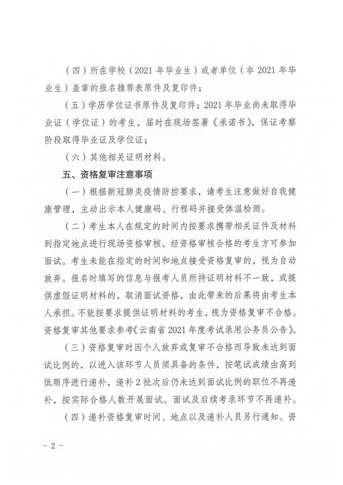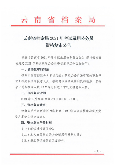 云南省檔案局2021年考試錄用公務(wù)員資格復(fù)審公告