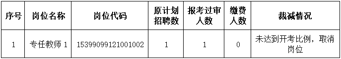 根據(jù)《云南特殊教育職業(yè)學院2021年公開招聘工作人員公告》的相關(guān)規(guī)定,對實際報名繳費人數(shù)與計劃招聘人數(shù)比例未達到3:1的招聘崗位予以取消或相應(yīng)遞減招聘人數(shù),截至4月27日24:00報名繳費結(jié)束,結(jié)合各崗位實際報名繳費情況,現(xiàn)將崗位裁減情況公告如下: