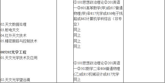 歡迎天文學(xué)、物理學(xué)、數(shù)學(xué)、力學(xué)、光學(xué)、機(jī)械、電子、計(jì)算機(jī)、自動(dòng)控制等專業(yè)的學(xué)生報(bào)考。