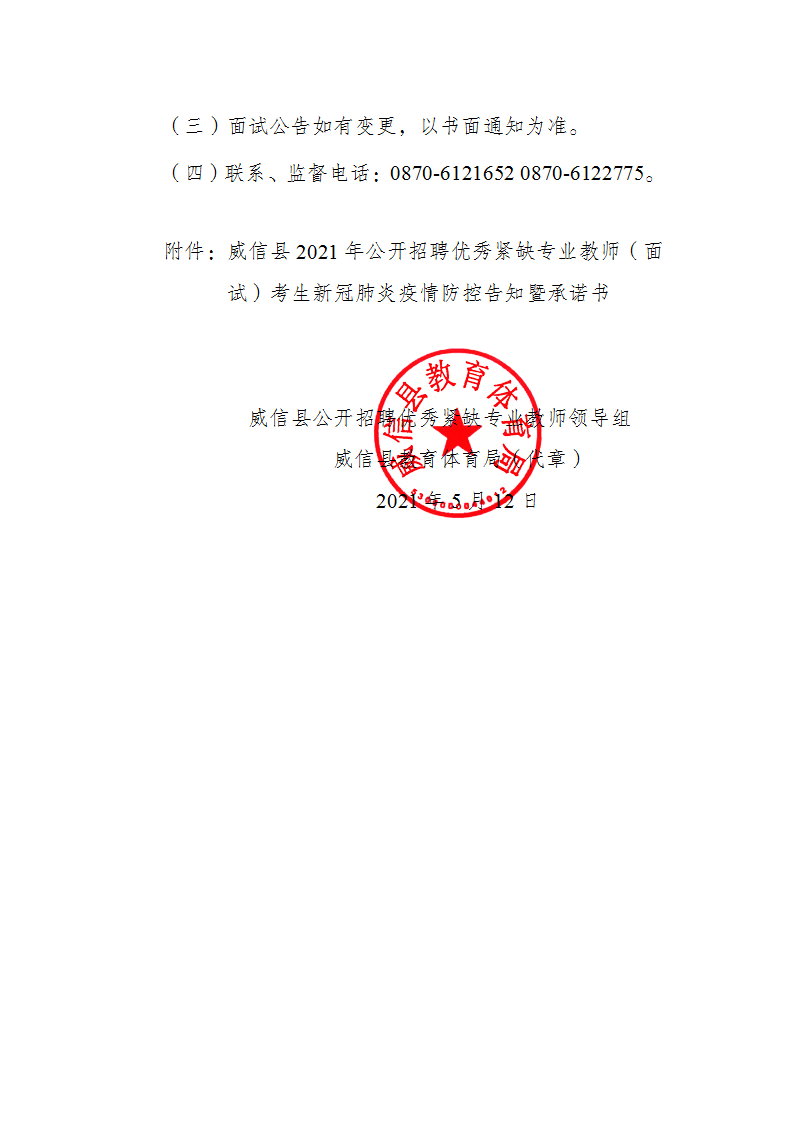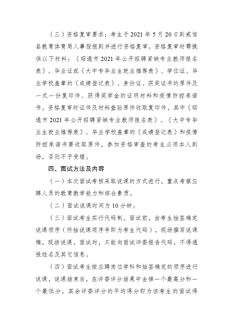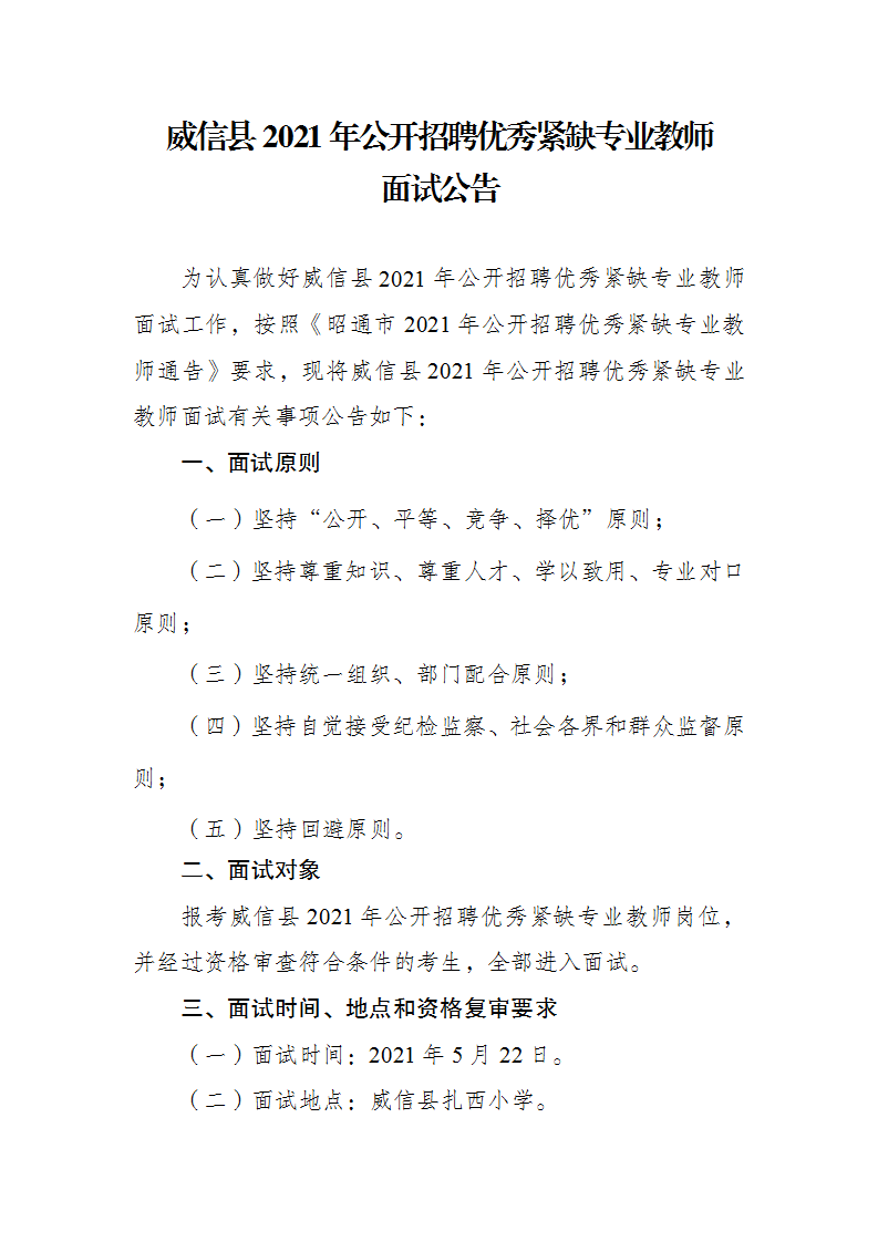 威信縣2021年招聘優(yōu)秀緊缺專業(yè)教師面試公告