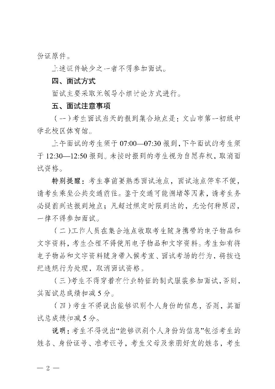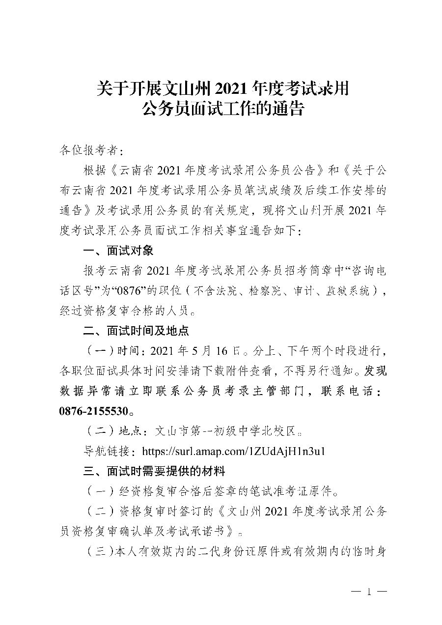關(guān)于開展文山州2021年度考試錄用公務(wù)員面試工作的通告