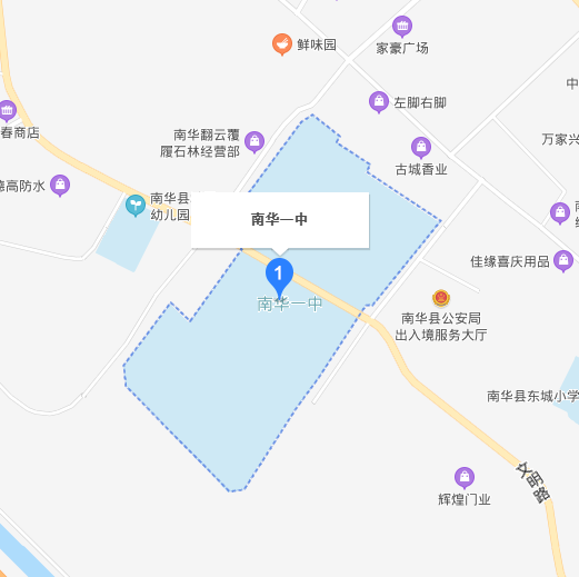 南華縣第一中學(xué):南華縣龍川鎮(zhèn)文明路222號(hào)