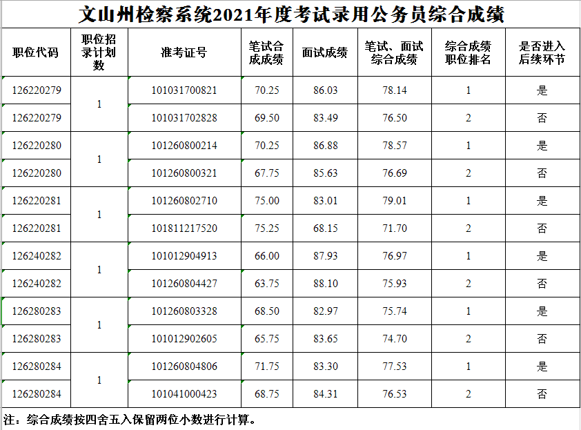 文山州檢察系統(tǒng)2021年度考試錄用公務員綜合成績公告