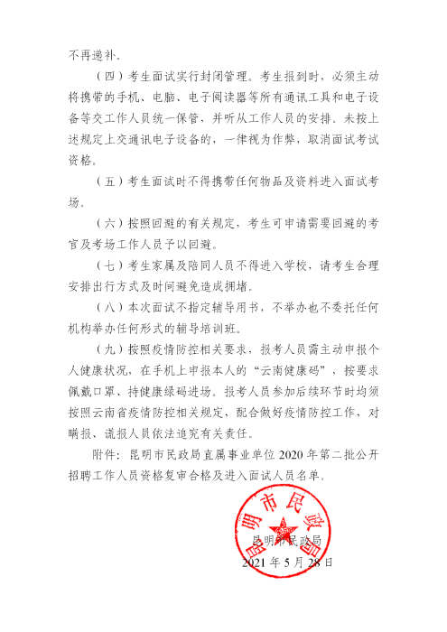 昆明市民政局直屬事業(yè)單位2020年第二批公開招聘工作人員資格復(fù)審合格及進入面試人員